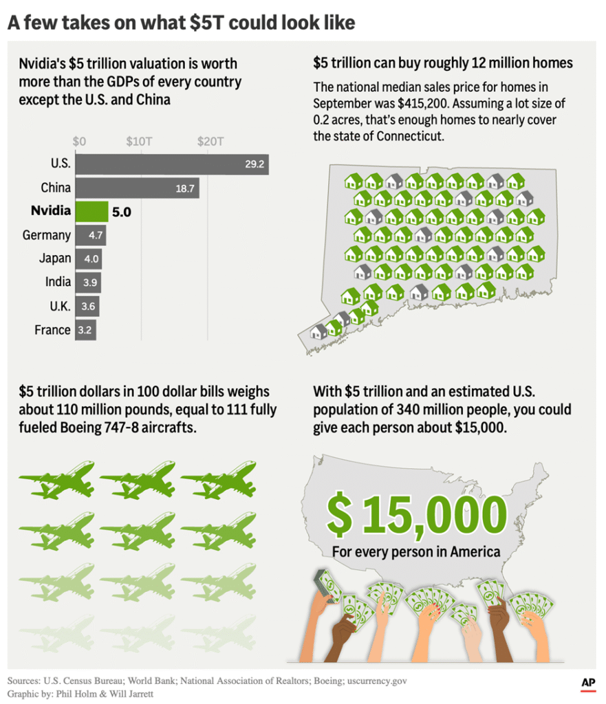 - Event: Nvidia becomes the first $5 trillion company in market capitalization.